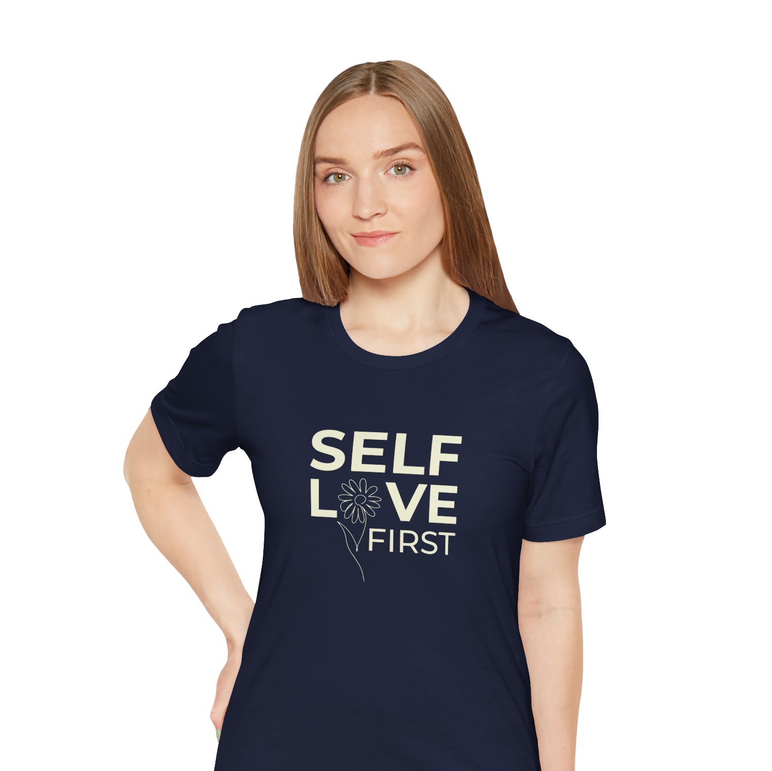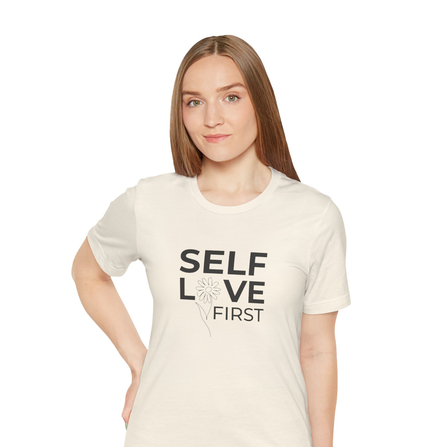This soft, breathable tee carries a quiet, grounding message: self love first. Light and airy against the skin, it sits easily under a jacket or pairs with worn-in jeans for slow mornings and reflective walks. The shirt feels like a friendly nudge to reclaim your own care — a linen-scented pause in a busy day. Wear it to yoga, to coffee with a trusted friend, or on evenings when you’re turning inward. The simple lettering and clean silhouette let the message lead without shouting. It settles into your routine and becomes a steady reminder to choose yourself more often.